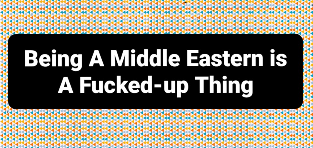 Since I was a little girl all I ever remember is war, war, and war, extremism, and dictatorships using people religious beliefs and ideology to stay in power, the hate speech against each other, I grew up in a household where everyone was accepted, my mom and dad had friends from every background, race, religions Christians, Jewish, Hindu, etc… And all sexes and sexuality, I grew up loving everyone and only treat them as human beings and if you’re not kind you’re not welcome into my life or you use hateful speech or discriminate others that’s what I’m going t judge you for; until I started going to school and that I realized that 90% of Middle Eastern people are different than my household.