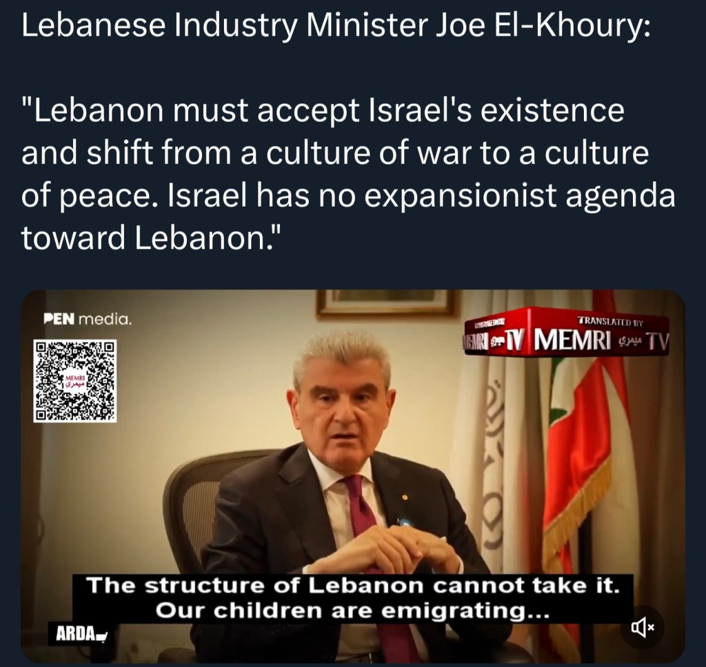 Hezbollah in Lebanon now that these podcasters are saying that Israel is capturing the lands, Israel withdrew from Lebanon in 2000, and they gave back everything, guess what Hezbollah did in 2006? kidnaps an Israeli soldier, who opened the gates of hell on them. Why do you think it happened? Add to that Hezbollah assassinated the Lebanese prime minister “Rafiq Al hariri” not stopping their but started to assassinate journalists like Shiite journalist “Lokman slim” and with others from different sects in Lebanon like “Samir Kassir, Gebran Tueni” with dozens of politicians, for exposing them, with so many others with the help of Iran and fast forward 7th October they started firing rockets while trying to do what Hamas did but in the Northern part of Israel out of nowhere, by calling the operation “backing Hamas”, on 6th October 2023 the whole region was going toward peace and Israel was occupying zero territories in the Middle East, while Iran bragging about occupying 4 Arab capital “Birute, Sanaa, Baghdad, Damascus” please go and write this and watch for yourself. Who do you think is expanding now? Iran now supplying arms for Sudan Muslim Brotherhood army, these podcasters are not talking or outraged by what Iran is doing in Sudan “Sudan War, with help of Iran” search for what is the Sudan’s Muslim brotherhood army is doing with the help of Iran and watch the horrors, the mass graves and the millions of Sudanese either starving, killed, while women are being raped as part of their war machine, why do you think these podcasters are not talking about Iran influence and Iran’s expansionist ambitions to reach a grater Iran, because the Psyop is “Israel Israel Israel” because it captures the audience, it reaches more engagements than Iran. And for more receipts, this is a Lebanese minister, Joe El-Khoury, saying: